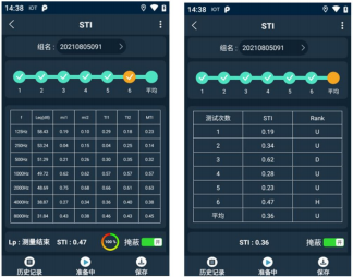 进入需要测量的“STI”界面后,初始状态为“准备中”(图标为,显示为蓝色),页面上显示的指标均为0或者是上一次测量值,触摸点击“”开始测量,仪器状态变为“测量中”(图标为,显示为蓝色(se)),测(ce)量(liang)(liang)15s后本(ben)次(ci)测(ce)量(liang)(liang)结(jie)束并(bing)自动跳(tiao)转至下(xia)一(yi)测(ce)量(liang)(liang)界面,状态(tai)为“准备(bei)中”。6次(ci)测(ce)量(liang)(liang)结(jie)束后不(bu)再跳(tiao)转,如图7所示。手(shou)动点(dian)(dian)击(ji)步(bu)骤区的“平均”可查看6次(ci)的STI、Rank和平均值,如图8所示ꦿ。可通过点(dian)(dian)击(ji)步(bu)骤区的编号(hao)查看对应界面。
